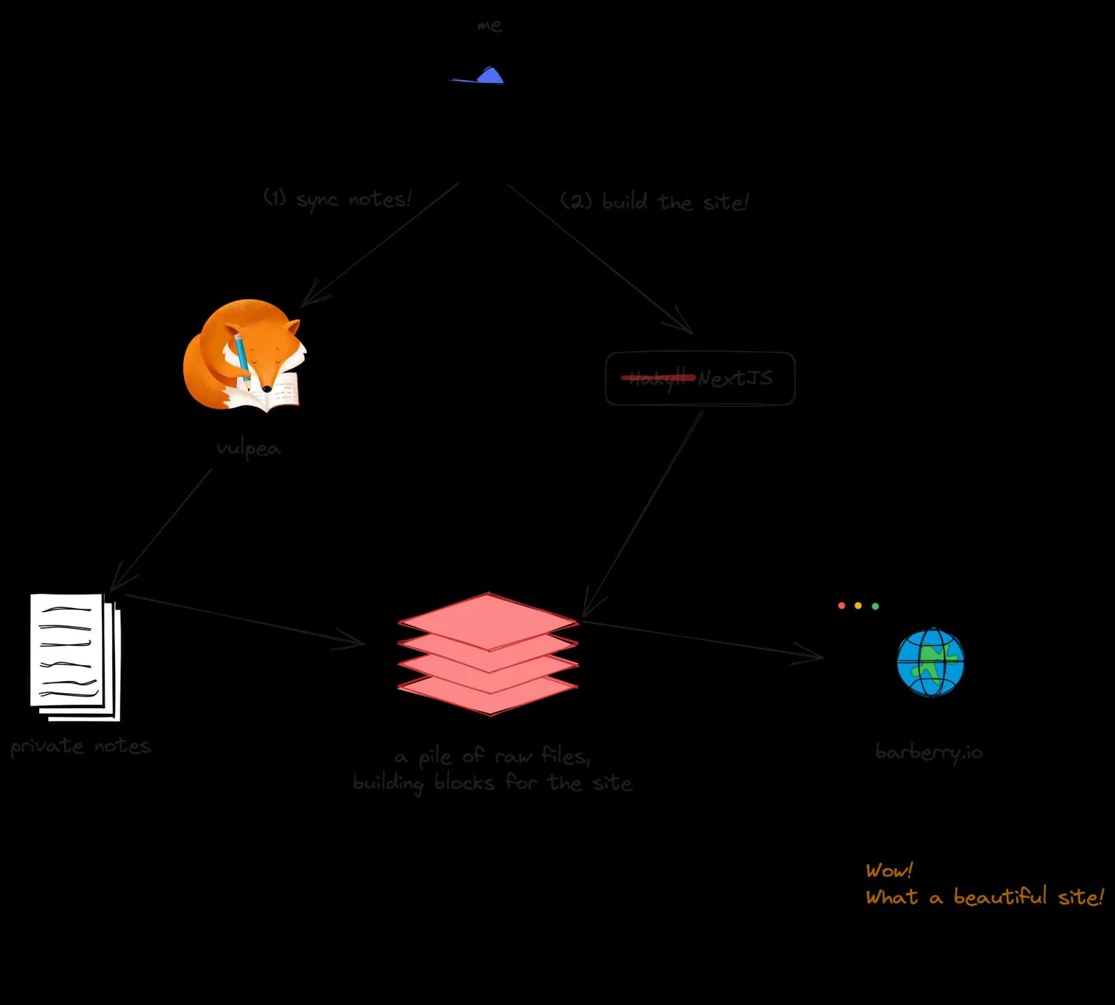 The process of Barberry Garden construction consists of two phases. The first is pulling public data from my private notes. The second is actually building the site. My initial focus was on the first phase as I wanted to make it fast, safe and reliable. Now that the task is mostly done I was able to focus on the second phase.